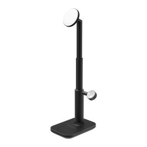 Đầu tiên phải nói tới là chân đế sạc có khả năng tăng giảm chiều cao tổng thể với thiết kế thò thụt dạng ống nhòm. Chân đế ở tình trạng rút gọn sẽ cao khoảng 20 cm và khi nối dài tối đa có thể cao tới 40 cm. Mình thực sự chưa nghĩ ra cái tình huống phải nối dài một cái đế sạc như thế này. Mophie cho biết họ đã gia cố trọng lượng của đế sạc để nó có thể đứng vững chãi ngay cả khi nối dài nhất và gắn đủ thiết bị sạc.