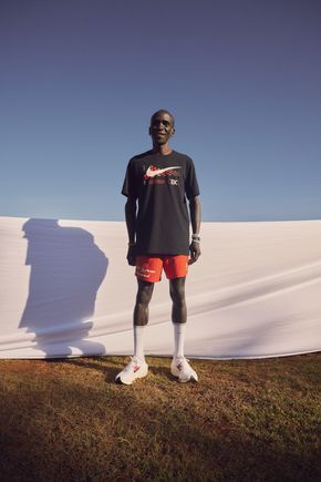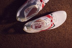 Kỷ lục do anh tạo thời điểm đó, 12:52.79, được in trên lớp lót giày, cùng với câu châm ngôn của Kipchoge: "No Human is Limited".
