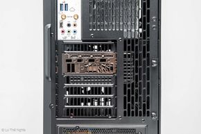 Một điểm mà mình thấy rất ưng ý ở Fractal Design North Mesh là sự đồng bộ trong thiết kế. Trừ phần hông và nắp trên dạng lưới lỗ tròn, các khe thoát nhiệt, thông gió còn lại là dạng viên con nhộng dài, thống nhất từ trên xuống dưới, cả phần thanh chắn PCI nữa.