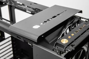 Để gắn đủ số lượng quạt như trên, anh em cần có 1 phụ kiện gọi là fan bracket. Khung gắn quạt này đi kèm North Mesh, cho phép gắn được 2 quạt 120/140 mm ở phần hông. Fan bracket có 3 vị trí để lắp, nằm giữa hông lưới và khung case, cạnh trước giữ bằng ngàm, phía sau có 2 ốc cố định.