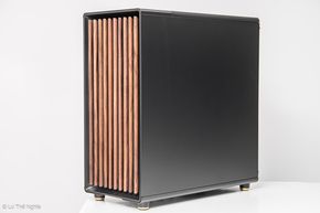 Điểm nhấn độc đáo nhất mà Fractal Design thiết kế cho North là ở mặt trước. Sự xuất hiện của gỗ hay chất hữu cơ trong ngành công nghiệp máy tính nói chung và thùng máy nói riêng là rất hay và lạ. 10 thanh gỗ thịt được dán keo lên bộ khung nhựa ở phía trước, mang lại cảm giác cân bằng hơn khi mà hầu hết chất liệu quen thuộc đều là nhựa và kim loại.
