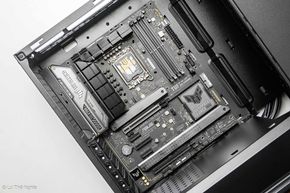 Phần khoét lỗ luồn dây EPS12V 8 pin cho CPU khá nhỏ. Bộ nguồn thử nghiệm là dây dạng bẹ (ribbon) nhưng vẫn bị cấn và khá khó để đưa thêm 1 đầu 8 pin chui qua lỗ này. Theo mình nhận thấy thì chỉ cần khoét rộng hơn 1 chút ở 1 trong 2 chiều là được.