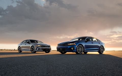 Mẫu sedan cỡ D có thiết kế bắt mắt của KIA vừa có phiên bản nâng cấp giữa dòng đời, mang một chút thay đổi về ngoại hình nhưng tổng thể form dáng thì vẫn không khác biệt nhiều. Ra mắt lần đầu tiên vào năm 2019, KIA K5 là sự thay thế cho dòng Optima trước đó, và là một trong những dòng xe đầu tiên thừa hưởng ngôn ngữ thiết kế mới được làm trau chuốt hơn, hiện đại hơn. Ở phiên bản facelift 2024, có thể ngay lập tức nhận ra sự khác biệt của xe khi nhìn từ phía trước tới.