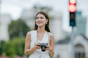 Mình chịu khổ vác chiếc ống kính mới, nặng gần 1kg của Nikon ra đường cùng Z8 để chụp ảnh với Vân, tiện thể xem thử chất lượng như thế nào để khoe với anh em.