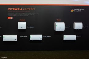 Còn với dòng máy nước nóng gián tiếp Vitowell Comfort có công nghệ Ceratech độc quyền của Viessmann, đảm bảo khả năng hoạt động hiệu quả dưới áp suất cao và nước cứng, tăng khả năng chống mòn trong suốt quá trình sử dụng. Lớp phủ Ceratech được cải tiến để bảo vệ các bộ phận làm nóng, dải đèn LED cho biết rõ nhiệt độ nước, màn hình điều khiển kỹ thuật số dễ dàng lập trình và quản lý thời gian đun nước.