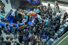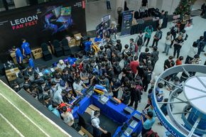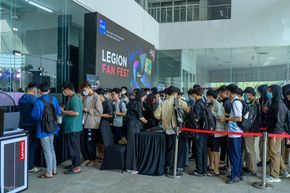 Mình nghe BTC nói rằng từ hồi sáng sớm (5-6h) đã có các bạn xếp hàng để nhận quà rồi, với Legion Fan Fest các bạn khi tham dự các mini game sẽ nhận được xu, xu này sẽ giúp các bạn tham dự buổi đấu giá chiếc laptop chơi game Lenovo LOQ hoàn toàn mới và có cơ hội sở hữu nó. Sự kiện thu hút rất nhiều bạn trẻ tham gia.