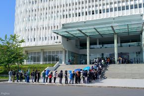 các bạn trẻ xếp hàng rất đông, cũng lâu lắm rồi anh em mới có được sự kiện quy mô và nhiều trải nghiệm vui như vậy.