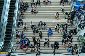 Mình ước tính số lượng người ở trong khuôn viên nhà văn hoá sinh viên khoảng hơn 500 người, vì số lượng là rất đông.