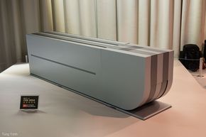Phần màn hình 137 inch sẽ được chia làm 5 phần và có bản lề kết nối để có thể gập lại thành một khối. Đây là một khối với hệ thống chân đế, cơ cấu xoay gập và chân đế cố định xuống sàn, tổng trọng lượng là hơn 680kg.