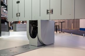 Sẽ mất 60 giây để dựng màn hình lên độ cao và thêm 20 giây nữa để 5 mảnh ghép của màn hình bung ra như một chiếc TV thông thường.