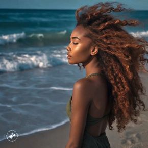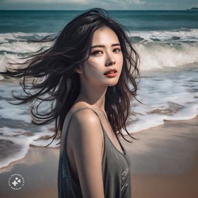 Hình ảnh cô gái bên bãi biển của DALL-E 3 trên Microsoft Copilot.