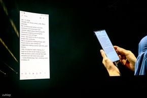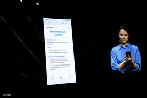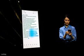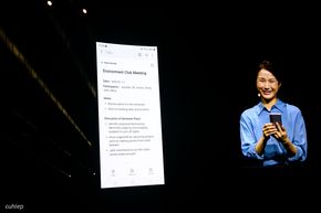 Trình diễn ngay trên sâu khấu khả năng dịch ngay khi gõ. Trước đây Apple hay trình diễn các tính năng thực trên sân khấu nhưng giờ là quay video phát lại.