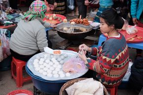 Ở những hàng bán thảo mộc, cây thuốc thường sẽ có kèm luôn dịch vụ xem bói bằng trứng gà như vậy nè. Nhưng hầu như trong chợ mọi người đều nói tiếng H'Mông, người biết tiếng Kinh cũng có và thường sẽ bán các sản phẩm cho du khách nhiều hơn. Còn người đồng bào nhiều người cũng nói được tiếng Kinh, họ có thể nghe hiểu và nói được một ít (chủ yếu là báo giá tiền), chứ nói nhiều hay giải đáp thắc mắc thì cũng không thể á.