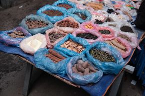 Chợ phiên bán nhiều nhất là các loại gia vị thảo mộc như này nè, ai mà có nhu cầu mua là cũng rẻ lắm nha.