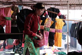Quần áo và cặp thổ cẩm trên đây bán nhiều lắm, nhưng một số mặt hàng làm mình cảm giác giống như nhập về bán, chứ không phải do người dân làm thủ công.