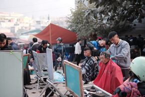 Chợ ở miền xuôi, người dân chủ yếu đến để mua thực phẩm thì ở chợ phiên sẽ có đầy đủ mọi thứ mà người dân cần, từ chăm sóc bản thân, ăn uống, trị bệnh,… Giống như trên ảnh là một khu cắt tóc của nam giới rất đông đúc người đang chờ đợi đến lượt luôn.