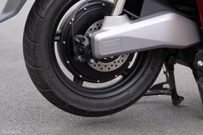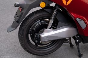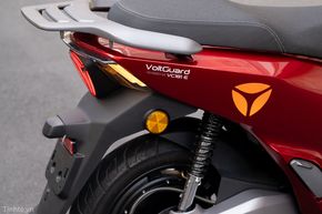 Mâm trước và sau của đều có kích thước 14 inch, sơn đen, giúp cho "giàn chân" của xe nhìn cân đối so với tổng thể thân xe. Khoảng sáng gầm 130 mm cũng là thông số đáng chú ý trên Yadea Voltguard bởi nó giúp mình có thể leo lên lề, đi vào các hàng quán mà không đối mặt với chuyện bị cạ gầm. Đi về phía sau, Yadea Voltguard có hệ thống đèn LED với họa tiết là logo của hãng, nhìn rất ấn tượng. Đèn xi nhan sau của xe đồng phong cách với phía trước, cũng là dạng LED thanh cho hiệu quả chiếu sáng và tính nhận diện tốt.