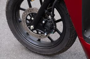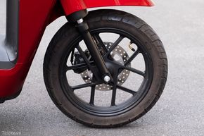 Về hệ thống phanh, xe được trang bị phanh đĩa đơn cho cả phía bánh trước và bánh sau. Mình thực hiện một bài test nhỏ, bóp chặt phanh khi đang chạy ở vân tốc tầm khoảng 20 km/h. Kết quả là, hệ thống phanh này giúp dìu chiếc xe từ từ dừng lại chứ không bị bó phanh. Mặc dù quãng đường phanh theo cách này chắc chắn sẽ bị kéo dài hơn, nhưng mình thấy nó vẫn giúp chiếc xe dừng lại theo ý mình, vừa không làm bánh xe bị trượt trên đường gây nguy hiểm.