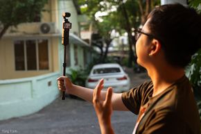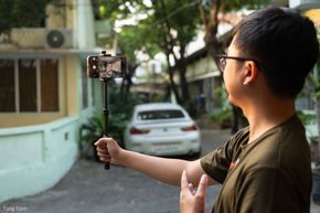 Cây nối dài này sẽ giúp dễ dàng hơn trong việc mình tự quay clip, có thể điều chỉnh góc thoải mái - rộng hơn. Việc có tay cầm điện thoại cũng giảm sự rung lắc rất đáng kể, nếu muốn thay đổi góc lật của điện thoại thì sẽ cần có thêm headball, nhưng cũng cần cân nhắc khi chúng gia tăng trọng lượng.
