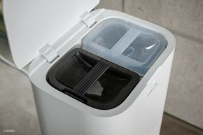 Bụi rác, kể cả bụi to nặng như các miếng vụn cát, bê tông được hút vào trong khay đựng rác của máy.
