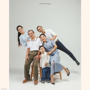 Đây cũng là một cách sắp xếp rất dễ khi chụp ảnh gia đình, không cần phải phân chia cao thấp sao cho mệt, gia đình nhỏ hay cặp đôi cứ đứng cùng với nhau, tạo nên 1 tổng thể hài hoà.