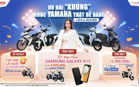 Đặc biệt khi khách hàng mua xe máy Yamaha bất kỳ sẽ được tặng 01 voucher trị giá 15.000.000 đồng. Thông tin chi tiết về dòng xe nhận ưu đãi xem tại website Yamaha: https://ymhvn.com/Spring_Promo2024 hoặc liên hệ đại lý Yamaha Town gần nhất: https://yamaha-motor.com.vn/dai-ly/ để biết thêm thông tin.