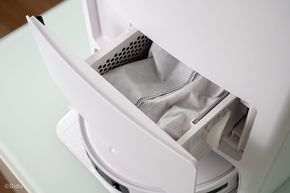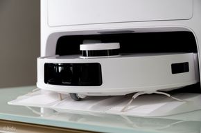 Dù không có camera và đèn nhưng T20e Omni định vị và phát hiện vật cản khá tốt. Về cơ bản nó sẽ tránh được những vật cản như dép, đồ đạc nhỏ trong quá trình đi lau nhà. Mình có thử với các vật siêu nhỏ như sợi dây, đồ chơi nhỏ thì khả năng nó va chạm và đè lên vẫn có. Khả năng tránh vật cản của T20e Omni mình đánh giá ngon hơn Roborock Q Revo mà mình sử dụng, cùng chung phân khúc. Giẻ lau xoay của robot có thể nâng lên 9mm khi đi vào khu vực thảm và sẽ được sấy bằng khí nóng khi đã giặt xong để đảm bảo khô nhanh hơn và diệt khuẩn. Có ba mức điều chỉnh lượng nước đổ ra trong quá trình lau nhà, mình để mức vừa thì thấy T20e Omni cho ra lượng nước khá nhiều, những ngày độ ẩm cao như này thì chúng ta không cần nhiều nước như vậy vì nó sẽ lâu khô và tốn nước hơn.