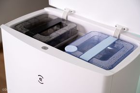 Thiết kế tổng thể của T20e Omni không nhỏ nhưng đơn giản và ít các chi tiết phải tháo lắp. Bên trên là hai bình chứa nước thể tích 4 lít mỗi bình, như nhu cầu sử dụng của mình thì mỗi tuần sẽ phải đi châm và đổ nước khoảng 2 lần. Bên dưới có ngăn chứa túi rác và mình không thích cách thiết kế nắp ngăn chứa này như là kiểu tháo nắp rời hoàn toàn, nó dễ lấy túi rác ra (và lắp vào) hơn là kiểu thiết kế này. Đường băng bên dưới để con robot về dock là cố định, cũng như ngăn chứa nước khu vực giặt giẻ lau cũng vậy. Chúng ta sẽ bấm nút để xả nước và vệ sinh khu vực này rồi nước bẩn sẽ được hút đi.