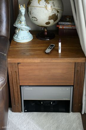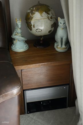 - Làm một chiếc tủ cạnh sofa và cho nó một cái khoang để ẩn nó vào trong khoang của chiếc tủ sofa đó.