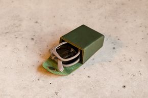 Hộp kính khi đóng lại. Nó sẽ ôm theo hình dáng cái hộp bên dưới và hít vào thân hộp bằng cục nam châm tròn trên nắp.