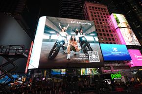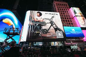VF9 và xe đạp tại Times Square.