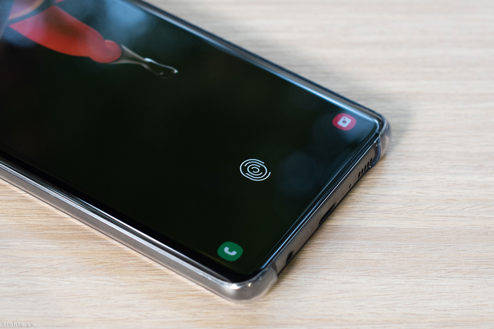 Cảm biến vân tay siêu âm như trên các mẫu smartphone của Samsung có thể dùng được khi tay ra mồ hôi hay không quá ướt, đồng thời tốc độ nhanh hơn, an toàn hơn so với cảm biến vân tay quang học phải chụp hình ảnh của vân tay. Anh em có thể để ý lúc đó khu vực cảm biến sẽ sáng lên, sau đó đối chiếu với dữ liệu được lưu trữ và trùng khớp thì máy sẽ được mở khoá.