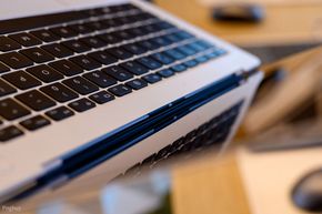 Máy mỏng và nhẹ nhưng vẫn hoàn toàn có thể mở được bằng một tay, bản lề của MateBook X Pro có thể giữ máy được ở một góc rất thấp, sau đó sẽ có nam châm và hít phần màn hình vào khung bàn phím.