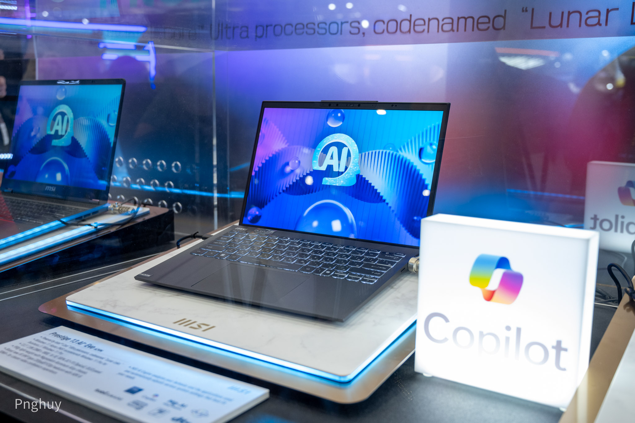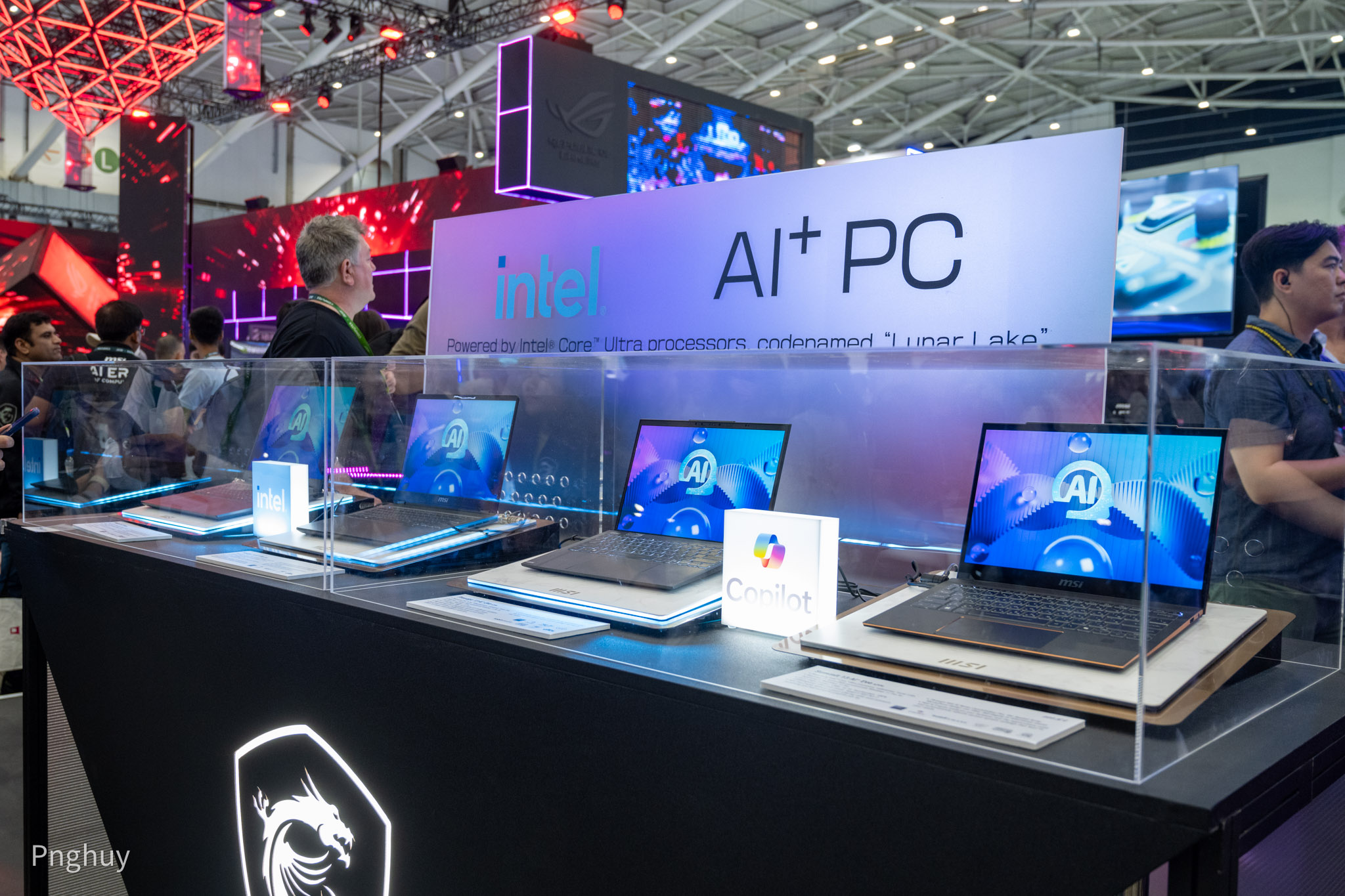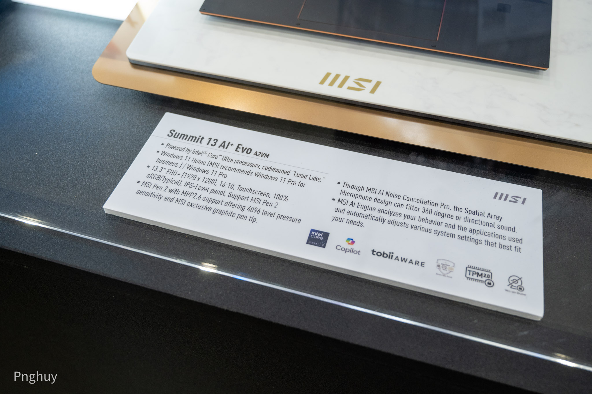 Keynote giới thiệu chính thức Intel Lunar Lake mới diễn ra vào sáng ngày 4/6, vì vậy những mẫu laptop này được xếp trong tủ có lồng kính, khá là đáng tiếc khi mà chúng ta không được trực tiếp trải nghiệm nền tảng mới của Intel, tuy nhiên đây vẫn chưa phải là những phiên bản chính thức, chính vì vậy cũng có thể hiểu được.