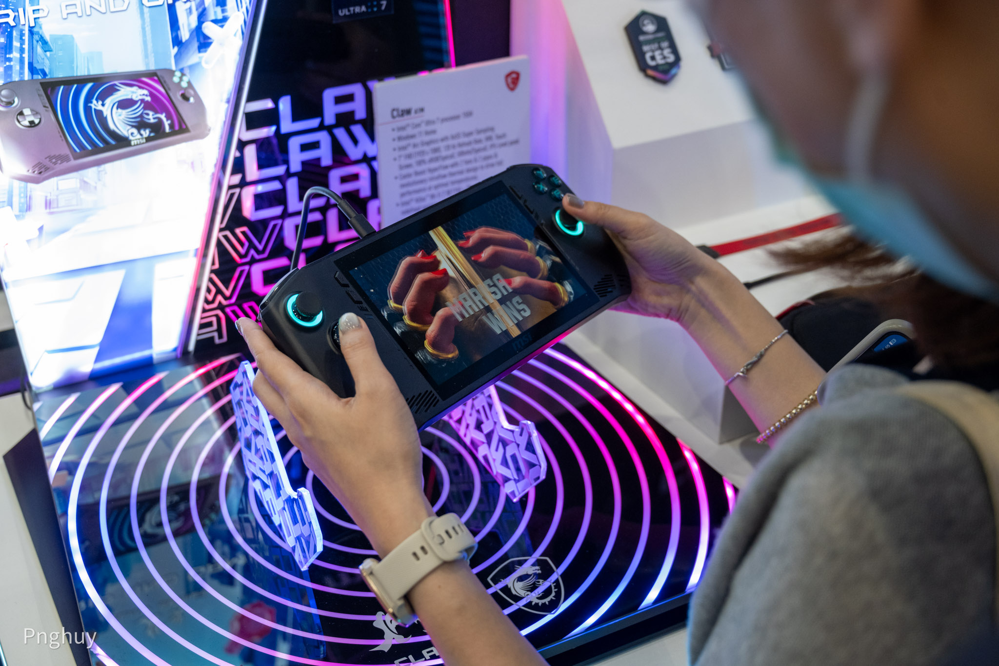 Một nguyên mẫu MSI Claw mới được MSI trưng bày tại triển lãm lần này, đây cũng là một trong những mẫu handheld PC đầu tiên sở hữu nền tảng Intel Lunar Lake.