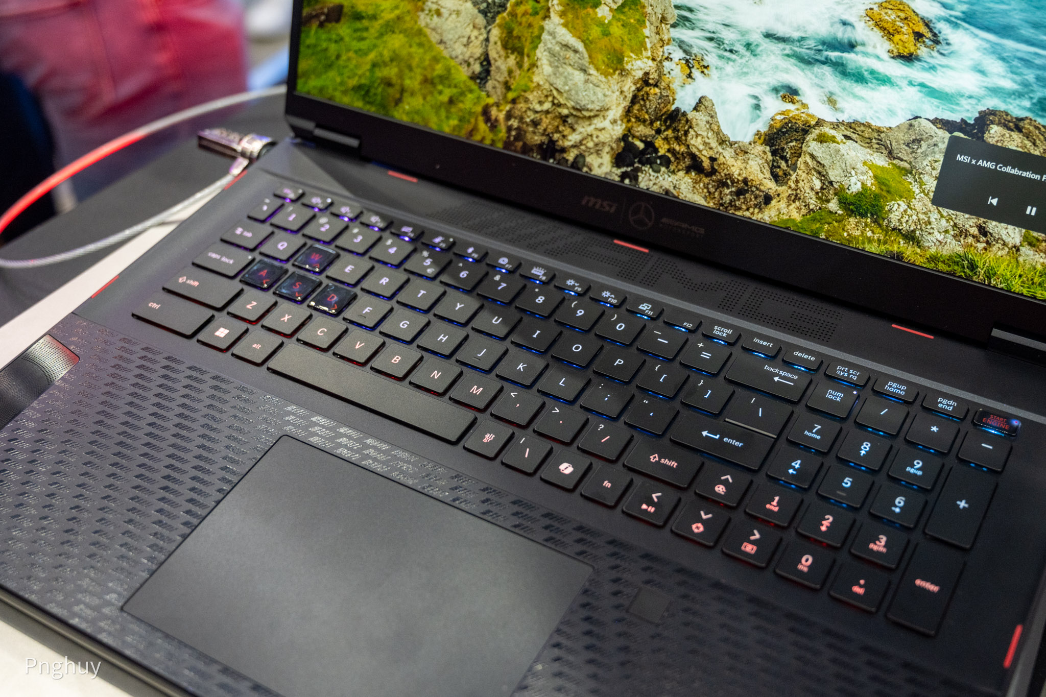 Phiên bản đặc biệt nên hoàn thiện cũng sẽ có sự khác biệt, mặc dù về cơ bản nó là một chiếc Stealth 18. Phiên bản đặc biệt sẽ có hoạ tiết trang trí chiếu nghỉ tay khác biệt, cụm loa với logo DYNAUDIO được làm lớn hơn, khu vực webcam cũng có hoạ tiết thể thao, ngay dưới bản lề là logo AMG được khắc độc đáo.