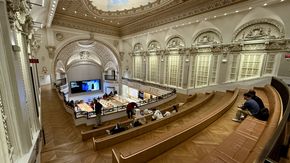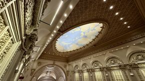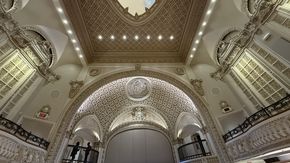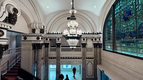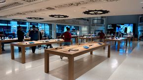 Sau khi đóng cửa từ năm 1988, Apple đã hợp tác với Foster Partners và các chuyên gia bảo tồn để khôi phục tòa nhà. Họ đã tân trang hoàn toàn tháp đồng hồ, biển hiệu Broadway, mặt tiền bằng đất nung và các chi tiết nội thất như cầu thang cẩm thạch, lan can đồng và đèn chùm pha lê. Không gian mới bao gồm khu vực Forum với màn hình lớn đặt trong vòm cung nguyên bản, Genius Bar được bố trí tại khu vực ghế ngồi tầng trên đã được bọc lại, cùng với việc lắp đặt hai thang máy mới để phục vụ khách hàng.
