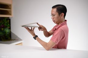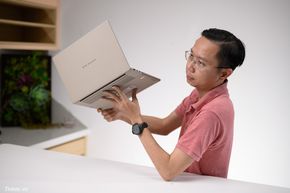 Với trọng lượng khoảng 900g, ASUS Zenbook A14 chỉ tương đương với một quyển sách dày một chút xíu.Đây có thể nói là một trong những chiếc laptop 14 inch nhẹ nhất mà mình từng được trải nghiệm trong khoảng 2 năm trở lại đây. Một trong những yếu tố làm nên điều đó chính là chiếc laptop này sử dụng một loại vật liệu rất đặc biệt. Thứ hai, thiết kế cấu hình của chiếc máy này cũng được tối ưu khi chọn nền tảng Snapdragon X của Qualcomm. Nhờ hai yếu tố đó, chúng ta có một chiếc máy mỏng và nhẹ như vậy.