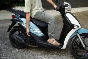 Mở yên lên thì thấy nắp bình xăng ở phía trên gần giữa xe chứ không phải ở cuối xe.