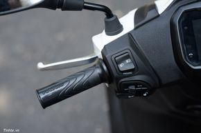 Tay nắm và các nút điều khiển bên phải. Nút có hình ổ khóa mở là nút mở cốp hay mở yên.