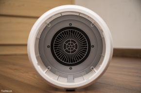 Mặt đáy của Xiaomi Smart Pet Care Air Purifier là nơi để chúng ta tháo ra và thay màng lọc khi cần thiết. Để tháo được phần đáy của sản phẩm, chúng ta cầm phần trục dọc và xoay ngược chiều kim đồng hồ.