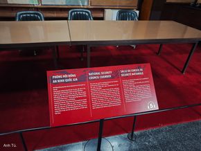 Còn đây là phòng Hội đồng An ninh Quốc gia. Nơi Tổng thống họp bàn với các tướng lĩnh và cố vấn quân sự Hoa Kỳ.