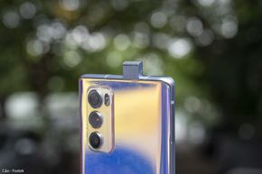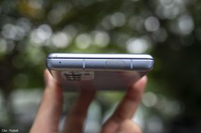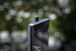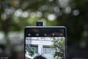 Phần đỉnh máy có mic thu âm, hai dải anten và đặc biệt là camera selfie dạng pop-up. Lần cuối mình được trên tay một chiếc smartphone có camera selfie pop-up đã cách đây gần 5 năm (cũng là thời điểm xu hướng thiết kế camera selfie thò thụt còn thịnh hành).