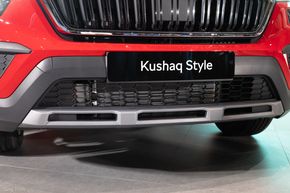 Thiết kế ngoại hình của Kushaq là những đường nét cứng cáp, tạo hình phần đầu xe có phần "cơ bắp" nhờ mặt ca-lăng cỡ lớn kết hợp với những đường nét góc cạnh. Cả hai phiên bản đều sử dụng đèn chiếu sáng dạng LED, hệ thống đèn hai tầng một phần thể hiện sự đặc trưng đồng thời phân chia từng hệ thống đèn theo tính năng riêng biệt ( đèn sương mù, đèn mở rộng góc chiếu khi vào cua bên dưới).