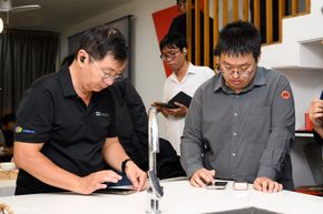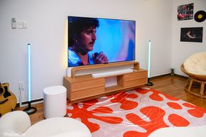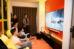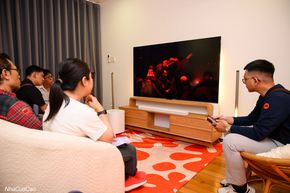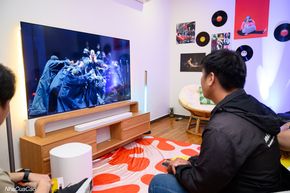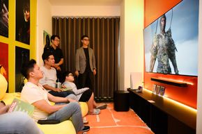 Anh em lần lượt được trải nghiệm các tính năng đặc biệt của hệ thống loa qua những không gian được bài trí cẩn thận như không gian thưởng thức thể thao để trải nghiệm tính năng PureVoice 2.0, hay không gian concert để thưởng thức âm thanh vòm, Dolby Atmos cũng như MultiBeam 3.0 trong việc tái tạo âm thanh vòm.
