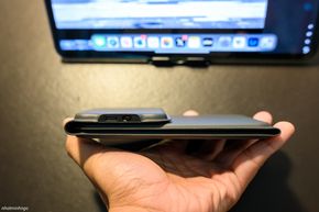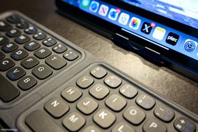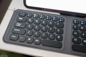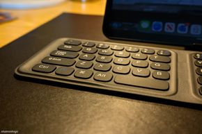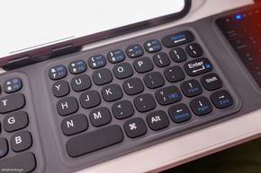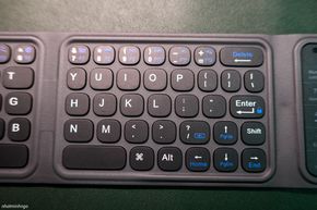 Thật ra, một trong những điểm nổi bật nhất của bàn phím di động này đó là kiểu dáng gập 3 tạo thành một khối nhỏ gọn cỡ khoảng 1 bàn tay. Kích thước này cho phép anh em thoải mái bỏ vào bất kì loại túi nào để mang đi. Phần bàn phím gập đôi có độ dày vừa phải, mang lại cảm giác cầm nắm nhẹ nhàng. Trong khi đó, phần touchpad khi gập vào sẽ khiến phần bàn phím khu vực này khá dày, tuy nhiên cảm giác cầm tại đây khá là chắc tay chứ không nặng nề hay khó chịu.