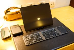 Một điểm đặc biệt là bàn phím này đi kèm với một phần touchpad cho phép anh em sử dụng nó như một con chuột thao tác trên iPad. Ngoài ra, touchpad này có thể được chuyển đổi thành numpad để anh em nhập liệu. Bên cạnh đó, một trong những lý do mình chọn sản phẩm này là nhờ phụ kiện stand đựng iPad đi kèm, dễ dàng điều chỉnh góc nhìn ở bất kì tư thế nào. Stand này là giải pháp gọn nhẹ thay thế cho dock Satechi mình hay dùng khi làm việc với iPad tại nhà hay quán cafe. Túi phụ kiện đi kèm cũng là một add-on rất tốt, được chia sẵn làm 2 ngăn, một bên cho bàn phím, một bên cho giá đỡ, thao tác tiện lợi, nhanh chóng. Điều này khiến việc mang bàn phím với giá đỡ đi theo trở nên tiện lợi, cũng là một cách để bảo vệ thiết bị khỏi trầy xước.