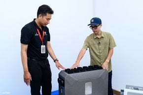 Lớn nhất và ấn tượng nhất là bộ máy chủ trao đổi nhiệt. Máy này sẽ làm cho nhiệt độ trong và ngoài không gian gần nhau nhất. Ví dụ bên ngoài 35 độ C, trong phòng anh em mở máy lạnh 26 độ C thì không khí từ bên ngoài đi qua bộ trao đổi nhiệt này sẽ về khoảng 28 độ C… không mang nhiệt độ nóng bên ngoài vào nhà.