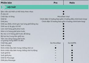 Bên trong nội thất có sự khác biệt đáng kể khi phiên bản Halo sử dụng da Nappa cao cấp, kèm theo loạt tiện ích như: Sưởi vô lăng, kính chiếu hậu bên trong chống chói tự động, sưởi ghế phụ và ghế lái, tính năng Massage cho hai ghế trước. Ngoài ra, tính năng Camera tích hợp trong hệ thống giải trí cũng chỉ có trên phiên bản Halo.