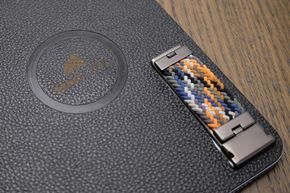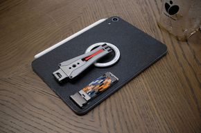 Phụ kiện tiếp theo mình đánh giá cao nhất chính là cái phụ kiện để mình xỏ ngón tay vào mỗi khi cầm iPad. Mình cũng không biết phải gọi nó chính xác là gì, nhưng nhờ nó mà mình có thể cầm iPad bằng một tay tự tin hơn, chắc chắn hơn, thoải mái hơn, không lo trượt rơi iPad.Bản lần này mình mua được nâng cấp chất liệu bằng kim loại, mỏng nhẹ, gọn gàng hơn đời đầu bằng nhựa. Phần dây để xỏ ngón tay vào đc làm bằng thun co giãn, đeo lâu cũng không bị đau tay như mấy loại khác. Mình gắn trực tiếp lên vỏ nhôm iPad bằng keo 3M cho kèm sản phẩm khi mua, rồi nhờ Khacten khoét laser miếng da vừa khít để "ôm" trọn phụ kiện này.